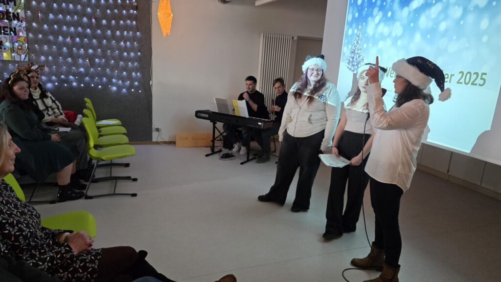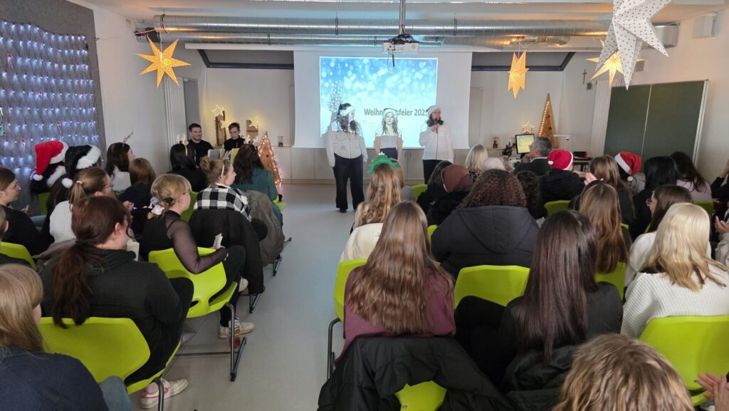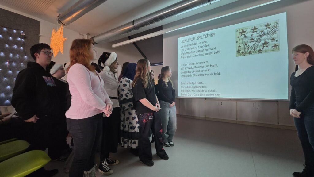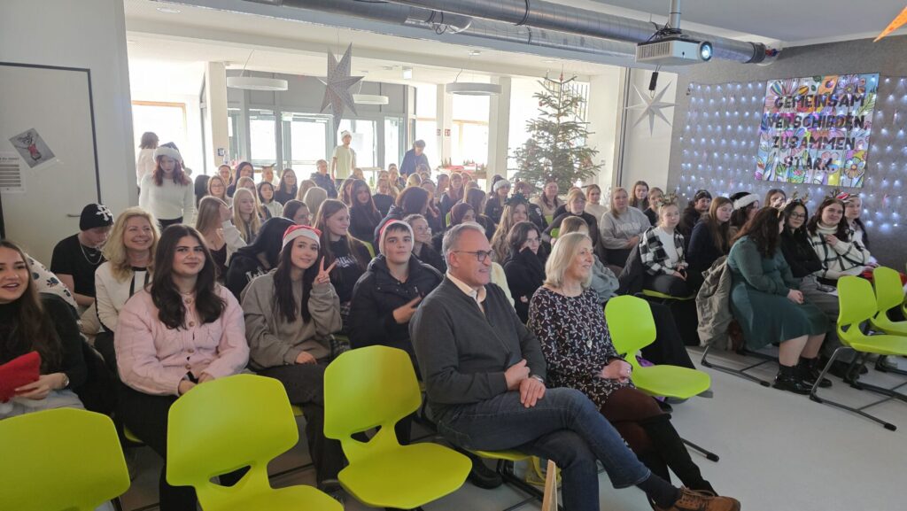 Am 18.12. fand in Mitterfels wieder das Highlight am Ende des Jahres statt: Die von der Vertrauenslehrkraft Evi Haaga gemeinsam mit den Klassensprechern organisierte Weihnachtsfeier. Mit dem Programm erwartete die Schulfamilie eine gelungene Mischung von heiteren bis besinnlichen Beiträgen aller Klassen. Nach einem weihnachtlichen Warm Up mit verschiedenen Weihnachtsliedern gab es ein kreatives Quiz zu den bekanntesten musikalischen Weihnachtsklassikern. Die Titel mussten anhand aneinandergereihter Emoticons erkannt werden. Im Anschluss erfuhren wir, wie sich Weihnachten ohne W-Lan beim Weihnachtsmann auswirkt. Wir tanzten und testeten unser Wissen rund um Weihnachten in einem Kahoot. Besonders weihnachtlich wurde es, als wir alle Zettel ausgeteilt bekamen, um darauf liebe Worte oder auch Entschuldigungen an anwesende Mitschüler bzw. Kollegen zu formulieren. Die Übergabe dieser kleinen Nachrichten fand im Anschluss bei Plätzchen und Punsch statt. Dies schenkte uns die Möglichkeit ohne Altlasten und Dankbar ins neue Jahr zu starten. Den Abschluss bildete eine interaktive Weihnachtsgeschichte, bei der die ganze Schulfamilie eingebunden war. Für einen Euro konnten die Schülerinnen und Schüler Lose für die große SMV – Weihnachtstombola erwerben. Das Geld kam unseren Spendenaktionen für das Tierheim Straubing und den Kinderschutzbund zugute. Siehe weiterer Beitrag. Wir möchten ein herzliches Dankeschön an alle Klassen mit den jeweiligen Klassleitern aussprechen, die unsere Weihnachtsfeier, jedes Jahr aufs Neue, tatkräftig unterstützen.