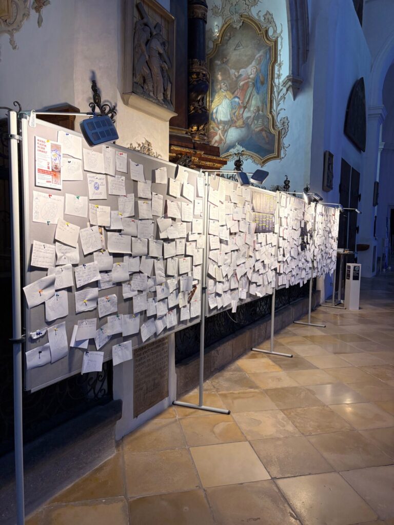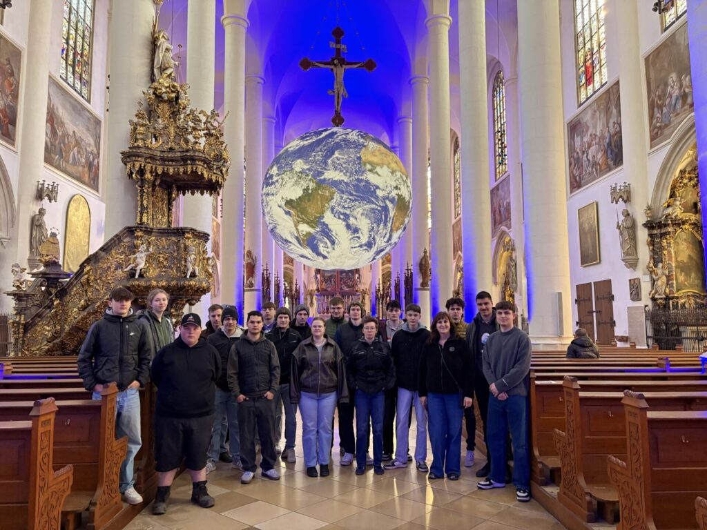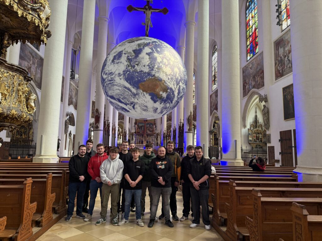 Die Kunstinstallation GAIA (griechisch für Mutter Erde) zeigt ein imposantes Modell der Erde mit einem Durchmesser von sieben Metern, perspektivisch beleuchtet und in Bewegung und begleitet von einer Klanginstallation. Die Schülerinnen und Schüler des BGJ Landwirtschaft konnten sich am 20.03.2026 ein Bild von der Erde in der Basilika St. Jakob machen. Gerade die angehenden Junglandwirte sind bestrebt, schonend mit ihrer Erde- Boden als ihre Produktionsgrundlage – umzugehen. Beeindruckend fanden wir auch, dass Jesus am Kreuz in der Basilika über der GAIA hängt, und somit stellt sich ein Gefühl der Ehrfrucht ein- wie auch die Astronauten berichten. Das macht den Schöpfungsgedanken und die Bewahrung unserer Erde noch wertvoller und eindringlicher.