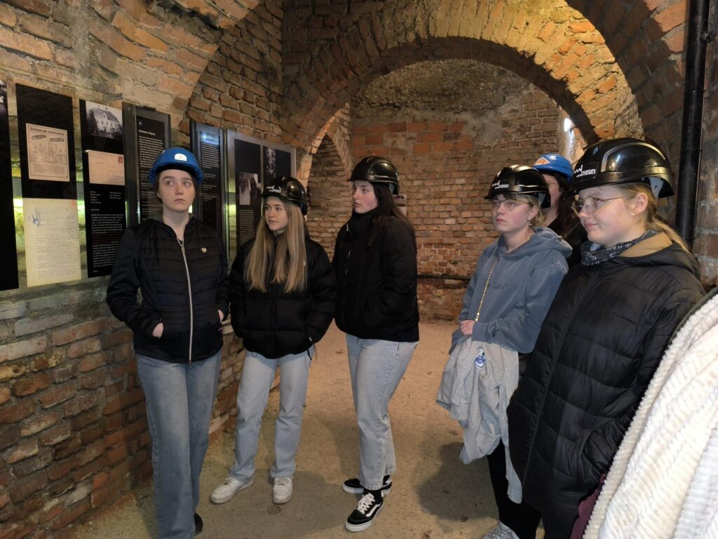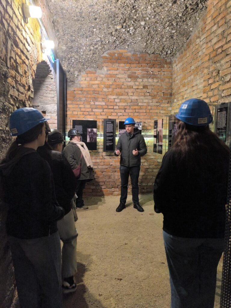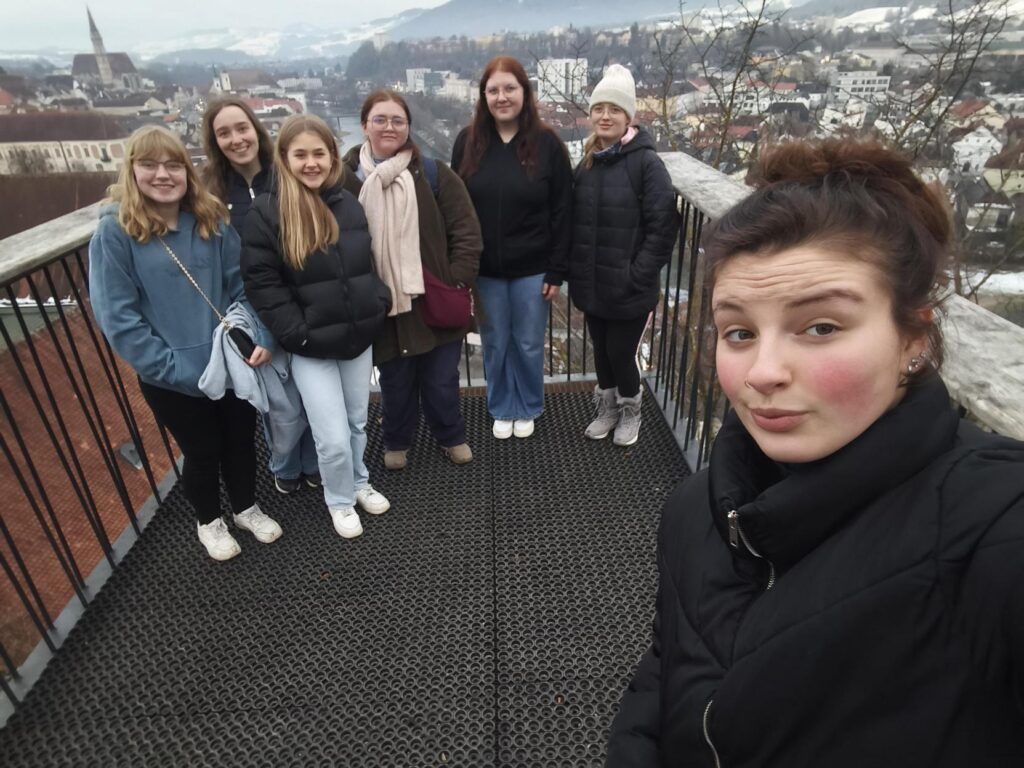 Diesmal ging der Schultag früh zu Ende. Wir nutzten die Zeit um unsere „Übergangsheimat“ Steyr etwas genauer kennen zu lernen. Natürlich ist ein geschichtlicher Hintergrund wichtig. Ein wirklich spannendes und ergreifendes Denkmal der Stadt ist der „Stollen der Erinnerung“. Hier erfuhren wir viel über die NS-Vergangenheit. In Steyr gab es ein KZ Außenlager von Mauthausen. Die Gefangenen mussten in der Waffenindustrie arbeiten.