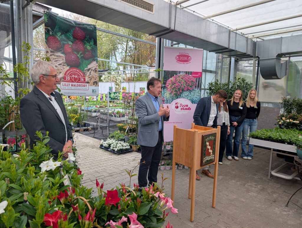 „Feenstaub“ und „Lilly Waldberry“ heißen die beiden auserwählten Pflanzen, die am Samstag, den 18.4.26 bei der Gärtnerei 1A Öller in Ortenburg vorgestellt und durch Landwirtschaftsminister Alois Rainer getauft wurden.